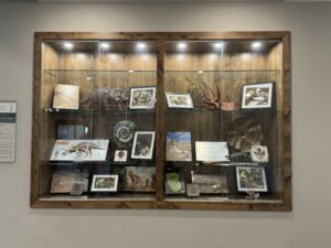 Wind Crest continued to celebrate their dinosaur discovery by installing a display cabinet in the hallway of the nearest residential building to Triceratops Park. This cabinet houses many photos from the dig, a triceratops skeleton and skull, and displays detailing the various bones found and the size of the triceratops.
